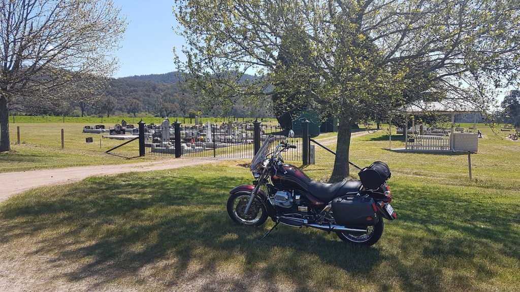 A lovely spring morning for a run down to Whitfield. I had search to do in the cemetery for findagrave.com, just the excuse to to kick the Cali EV into action. It’s about a 90 minute cruise down there, along the King Valley, past all the vineyards. Everywhere was green from the recent good rain. Edi Cutting, where we hold the Spaghetti Rally, was full of campers and caravans due to the school holidays. The King River was running strongly.