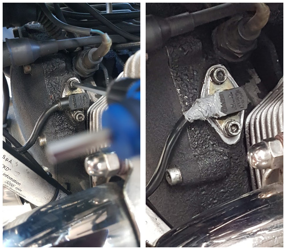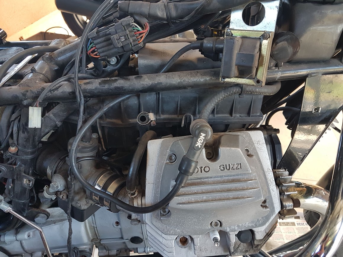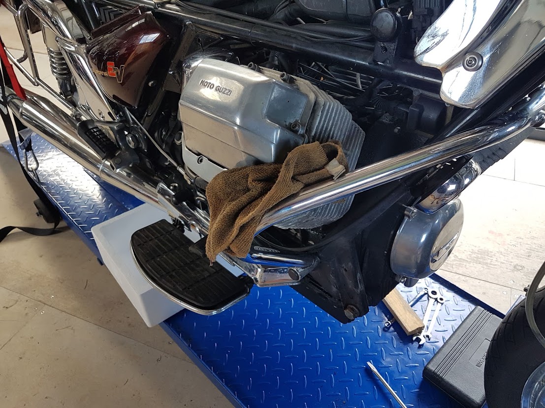 In addition, the timing sensor in front of the left-hand cylinder had been weeping for some time, a not uncommon occurrence. I searched the Moto Guzzi forums for information, of which there was plenty, and got stuck into it.