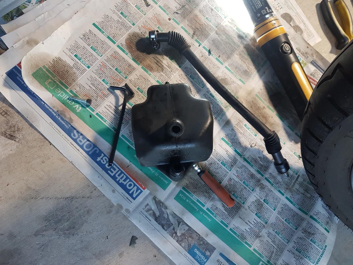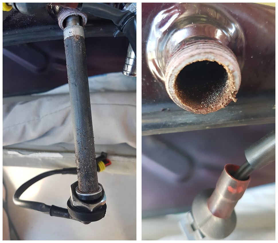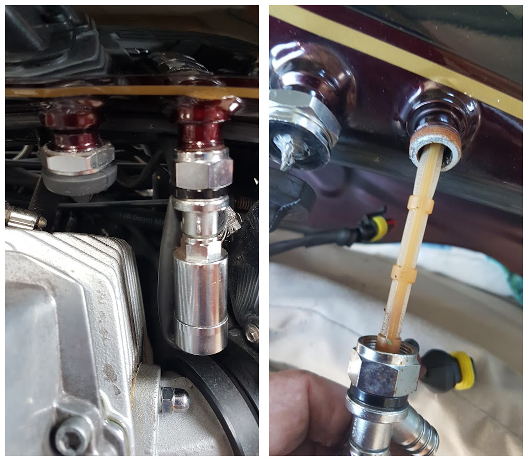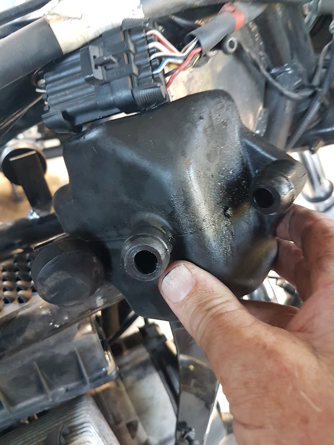 I’d noticed an occasional petrol smell around the Cali. One day while cleaning it, I detected a slight sheen on the cable coming from the fuel-level indicator where it exits the tank near the fuel solenoid. I put up with it for a few weeks but it developed into a slight drip, so time to do something.