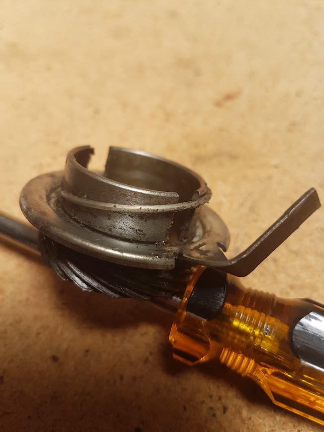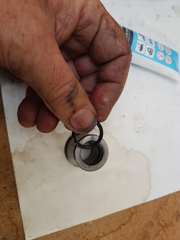 The old seal proved difficult to remove and I was wary about damaging the surface. My el cheapo seal removal tool wasn’t up to the task and grappling with a screwdriver ruined the seal but it didn’t budge. It had been on there for 20 years or so. Down my street, Fritz serviced and repaired ride-on lawnmowers in his shed so I walked down there to see if he could help. Using a seal remover tool which looked similar to a one-fork claw hammer, he removed it with one swift movement.