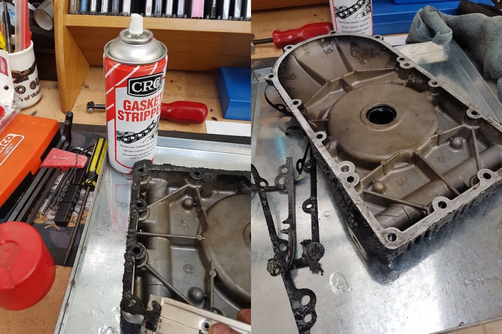 I hit the old gasket with CRC Gasket Stripper and 10 minutes later it peeled off easily with a scraper.