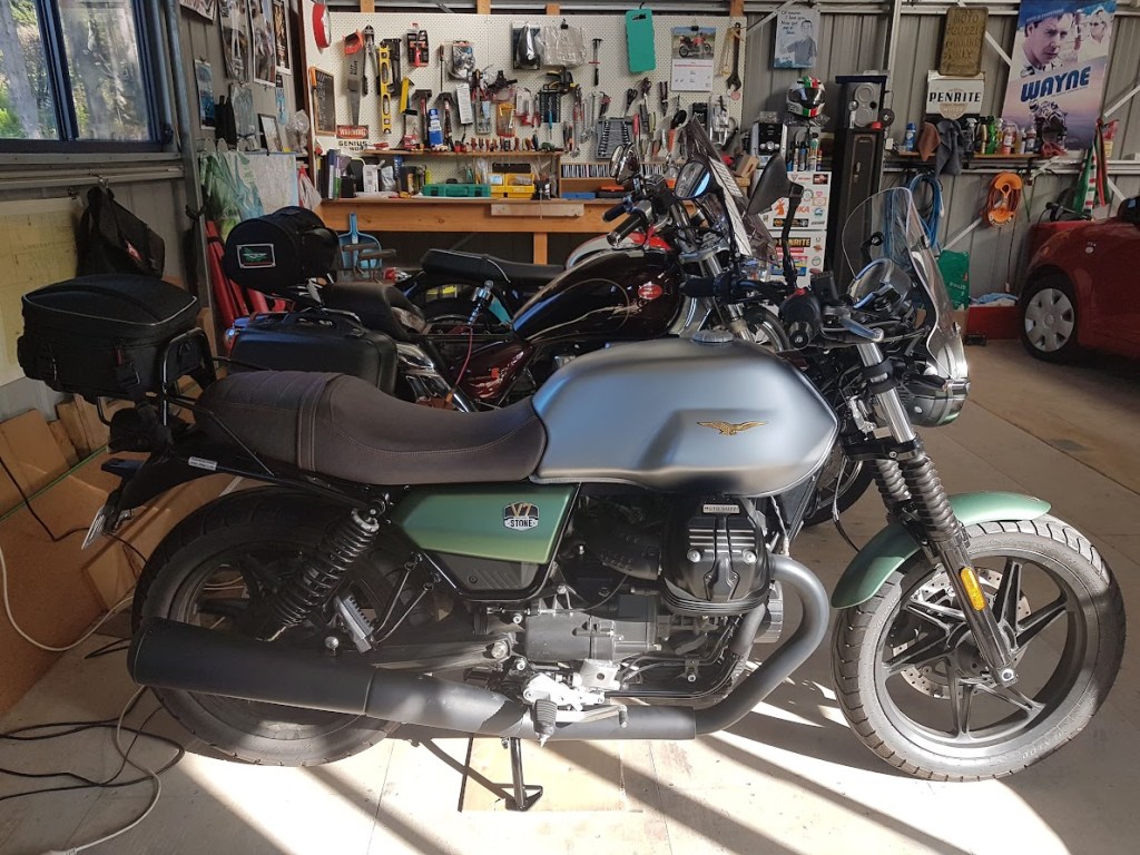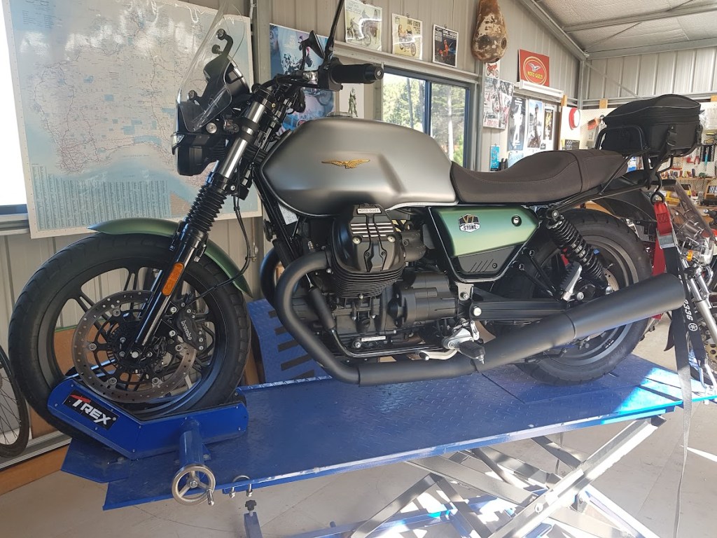 I bought this V7 second-hand last year to replace my Breva 1100. The Breva was starting to feel too big but the V7 is just right. I ordered the OEM centre-stand from the Moto Guzzi Online Shop in Germany, unable to find one in stock locally. I’d ordered my windscreen from them last year and found them very efficient. The stand took longer to arrive but there weren’t any hassles.