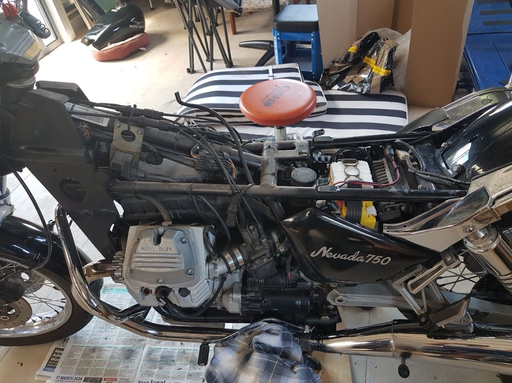 In February 2026, the Nevada will go in for a roadworthy so I can register under the Club Permit scheme. This allows the bike to ridden as a classic or historic bike with lower registration costs. Final job was to remove the wheels and have new tyres put on.