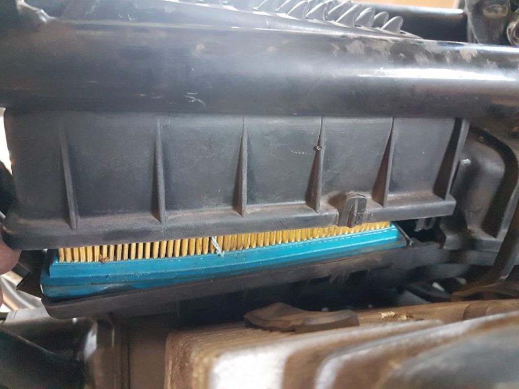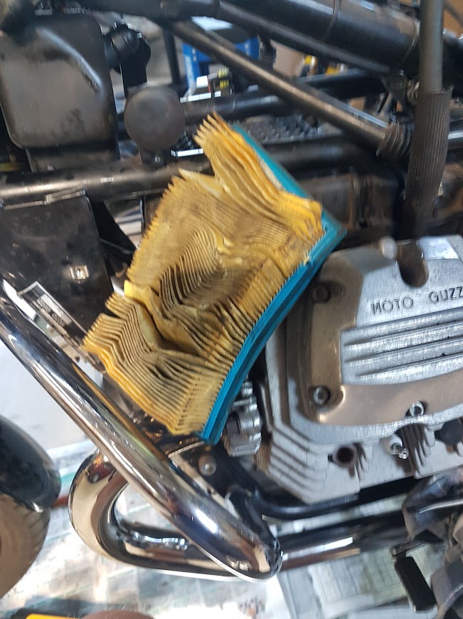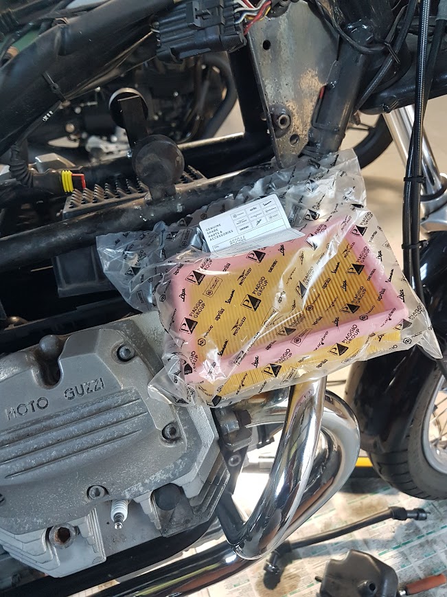 In the service records, I couldn’t find any mention of the air cleaner having been replaced. I wasn’t surprised. I’ve previously read that replacing the air filter was a nightmare. But I was going to, and a YouTube search revealed this: Moto Guzzi Nevada 750 air filter change. Frankly, I couldn’t have done it without viewing the video.