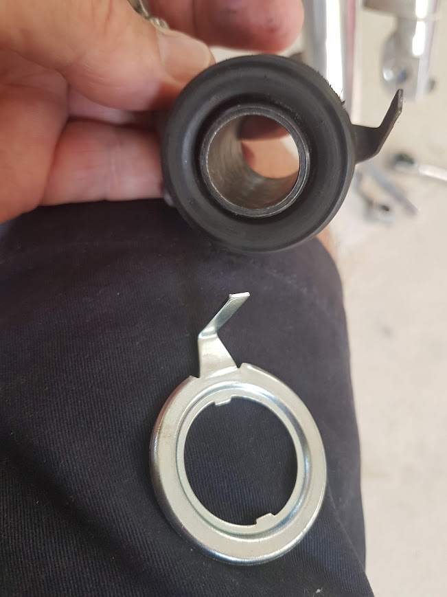 Now for the engine support bar. Undid the nut and tapped the bar out using the provided longer bar as a drift. It came our smoothly. Took the new bar out, placed the crash bar on and tapped the new bar through to the other side. No drama. Placed the other crash bar on and the nut. Easey-peasy.