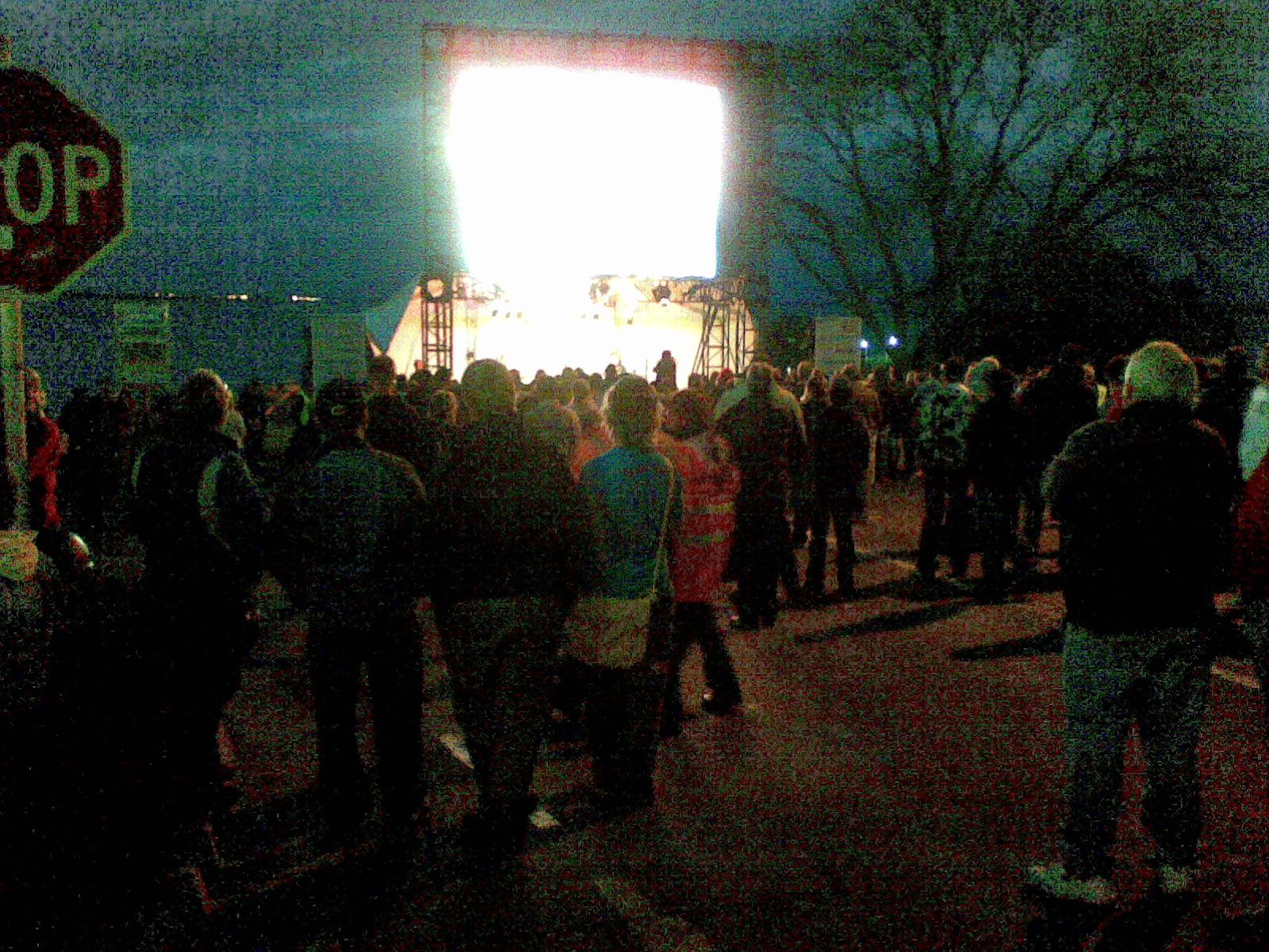 After brekky of bacon and egg sangas and coffee at the bakery, we drove from Inverloch to Phillip Island on Saturday morning and were hit by another heavy passing shower. The parking areas were a muddy mess and we directed down to the bottom of the paddock. Were not confident of getting out. The guy behind us got bogged! It never rained again the whole weekend. Wondered around the track and the industry sites and watched the time trials. The sun came out and dried everything off. And the car came out no worries! Went to Cowes on Saturday night for the street party and to see all the bikes. Toseland wandered through. perhaps he shouldn’t have – he copped a jumped start penalty the next day!