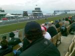 Caught the bus from Inverloch to the track on Sunday. The driver told us he’d leave 30 minutes after the last race ended – no time to watch the podium because the buses were parked far from the main straight! Spent most of the day in the stand. The Australian Superbikes, 125s and Gp were the best races. (ASBK riders polled better times than the latter riders of the Moto GP). Some spectacular crashes, including that of Chris Knox, ASBK, who ran wide onto the main straight, into the grass and then was tumbled along the main straight for half a kay, ending up unconscious and with a broken leg in front of our stand. Not a good sight to see when it happens so close – it’s different on tv – he was like a rag doll. Because he crashed in front of the pits (figures on the edge of the track), the circuit doctor was first on the scene.