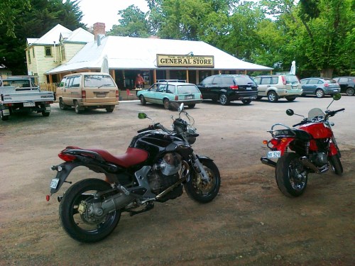 Went for a spin out through central Vic, through Daylesford and Creswick. On the way back we stopped at the Glen Lyon General Store for lunch. This has recently been renovated, with a new outdoor entertainment area for live music. We had the dukka chicken for $12.50 which was excellent.