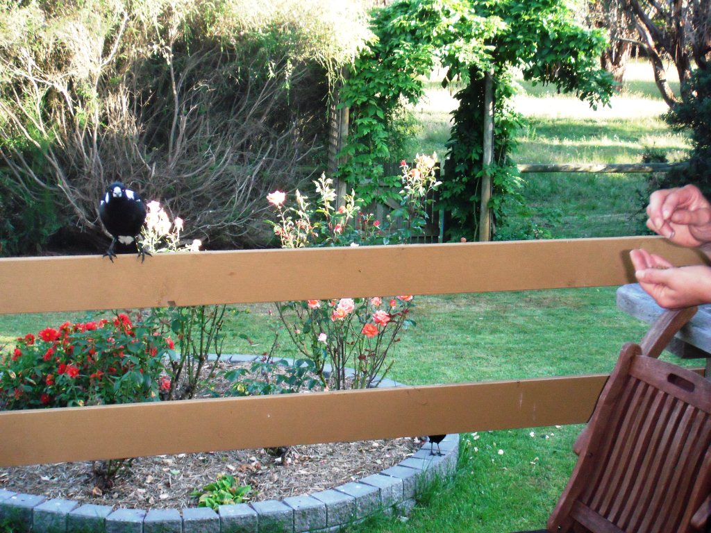 The following morning, tossing cat biscuits to “Michael” (“Nigel” and “Squeaker” out of view).