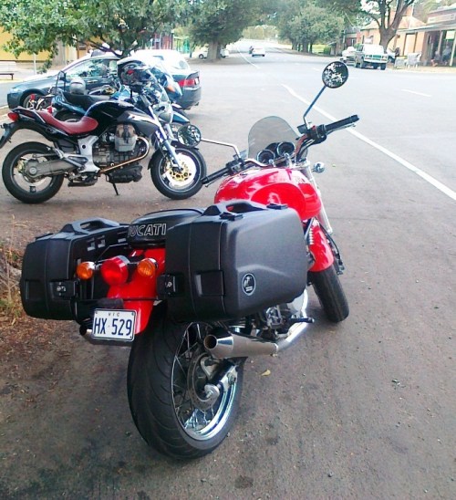 Put the Hepco-Becker panniers on Jane’s Ducati and went for a “shake-down” cruise through Maldon, Newstead, Creswick and Daylesford. Definately a good test on some of these goat tracks that are supposed to be main roads!