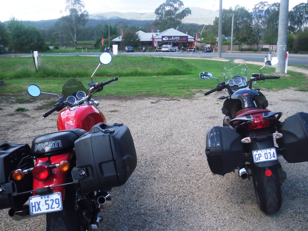 Cool weather but we got away for the weekend to Bright in north-eastern Victoria. Stopped at the Peppercorn in Yea for a coffee, over Lake Eildon (full) at Bonnie Doon and onto Mansfield for lunch before taking that lovely road across the ridge to Whitfield – another coffee at the Whitty Cafe. A nice run down the King Valley to Mytleford and Bright.