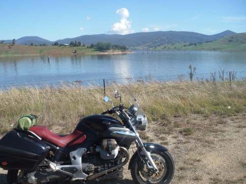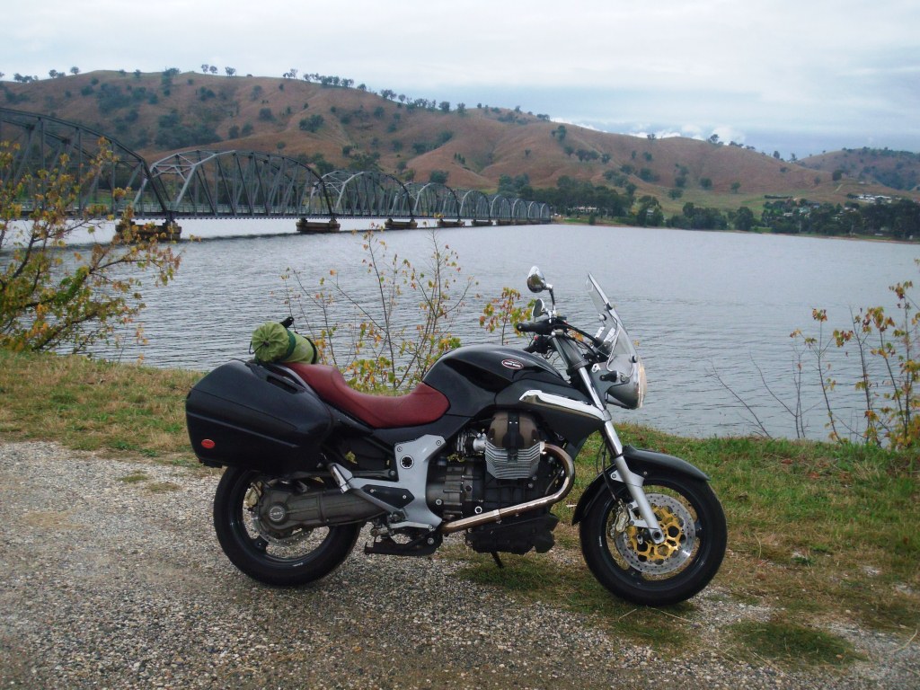 I wanted to take a pic of Bellbridge. The last time I was here, for the 2009 “All the Guzzis Run”, the Hume was nearly empty. A few months ago, it temporarily reached 103% full and was lapping under the bridge.