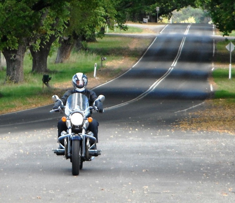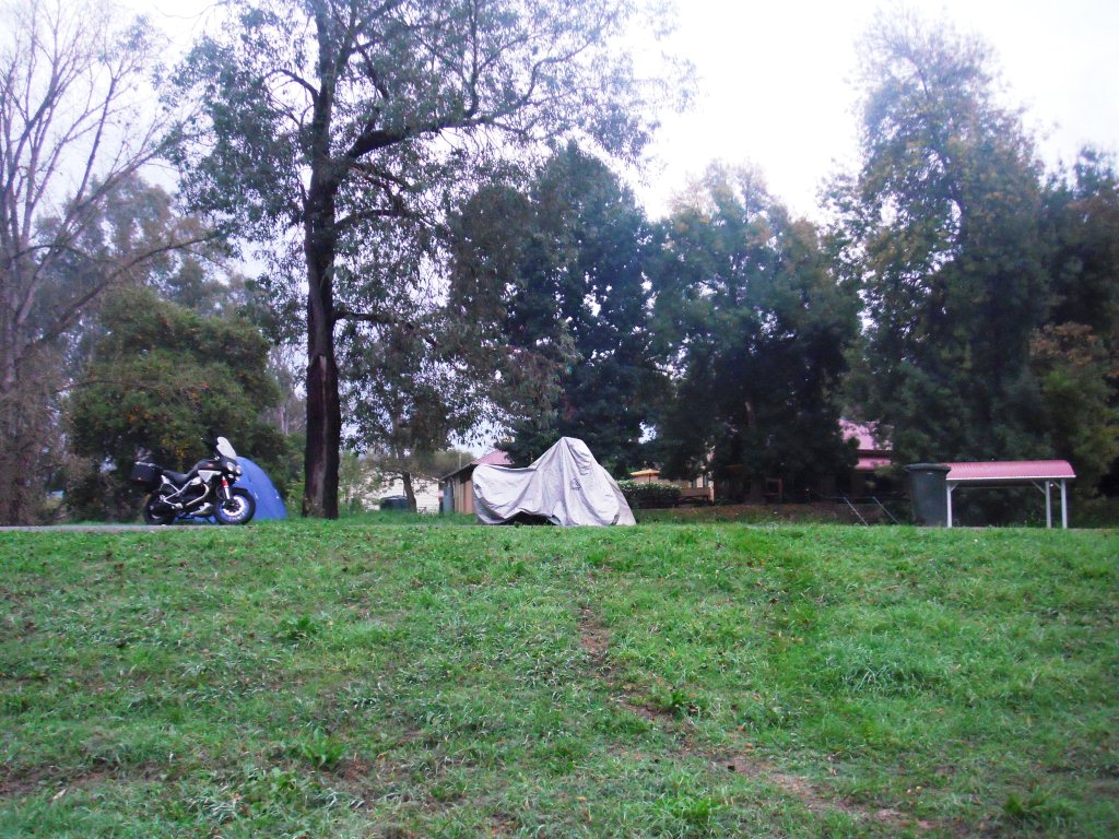 The publican put on brekky for us and I shot through soon after – some were staying for an extended weekend. I took it easy in the wet – my visor fogged up and there was a bit of fog and drizzle around. Eventually the cloud lifted, the drizzle stopped and blue patches could be seen towards Wodonga. For the entire 88km trip, I didn’t pass any car or motorbike. I had the road to myself!