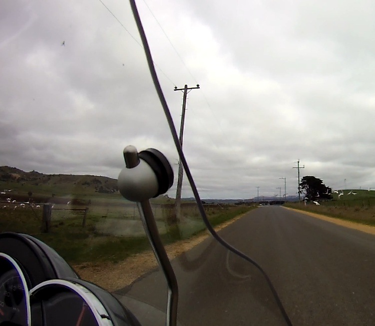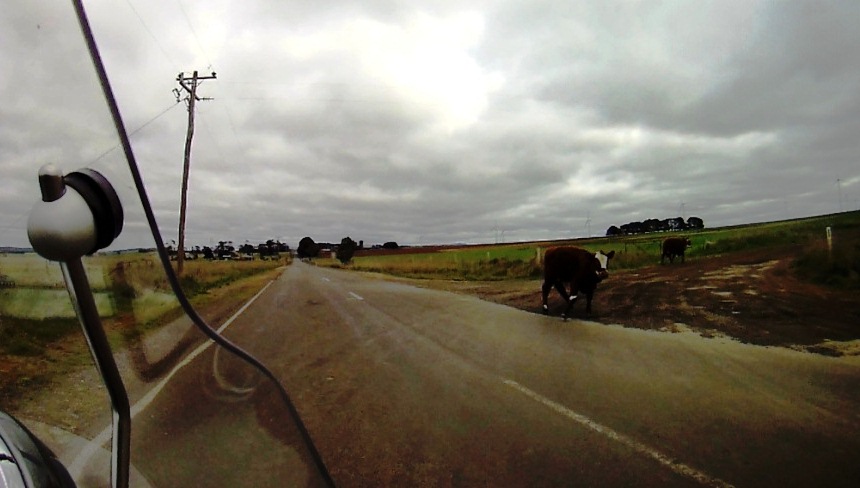 Cloudy but the forecast was for a sunny arvo. Out through the forest and into Daylesford for my first brew and a warm up. Then on to Creswick and the Addington Road, past the wind turbines and dodging galahs, errant sheep and loose cattle.
