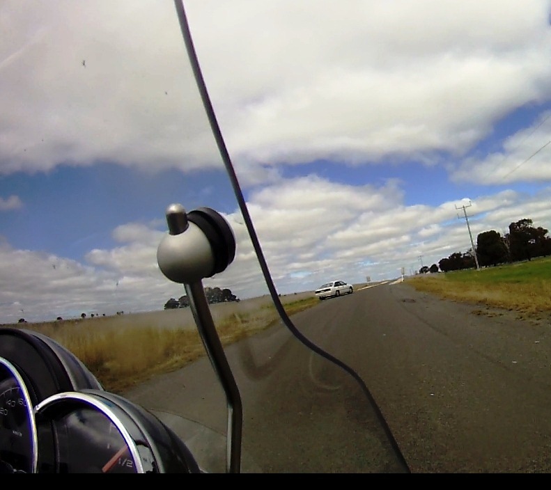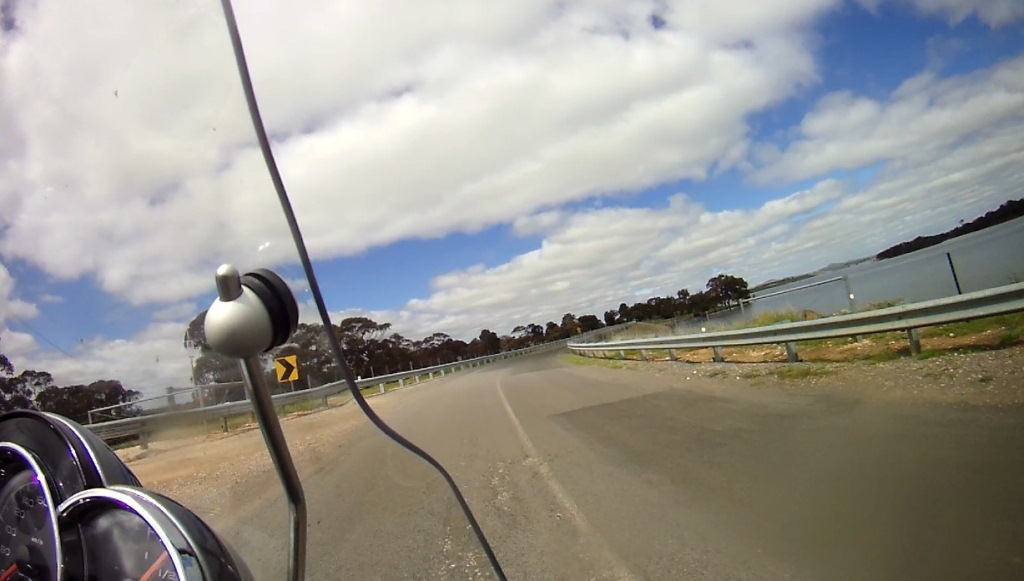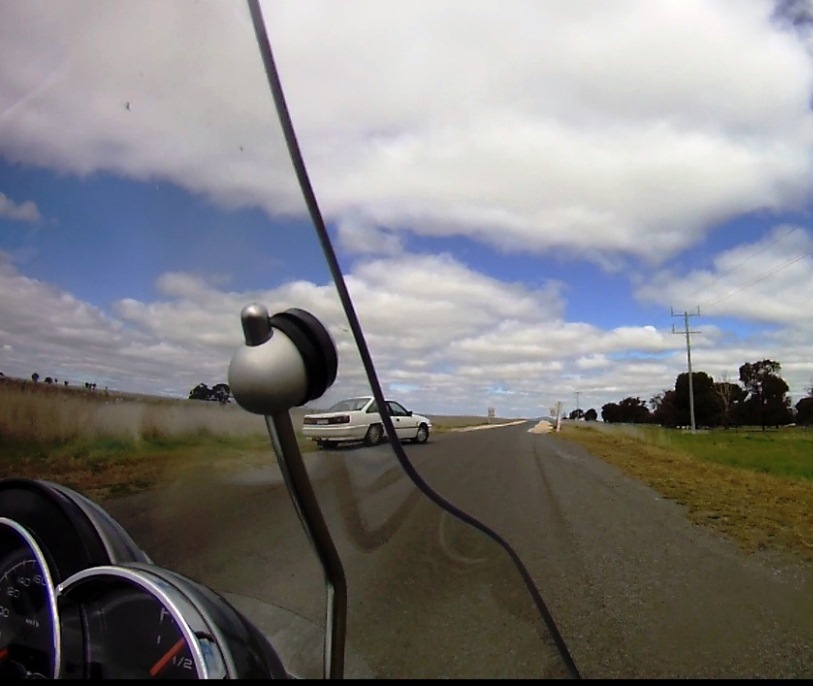 See this idiot! He must have seen me coming behind him as we crossed the dam wall, but chucked a U-ee on a bend and below a crest. Jeesus! It was worse than it looks.