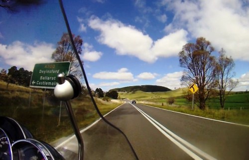 Covered 350kays. The Breva now has over 39,000kms on the clock, so a couple more trips will see her ready for a service. Here’s the run up the valley to Mt Franklin, near Daylesford: