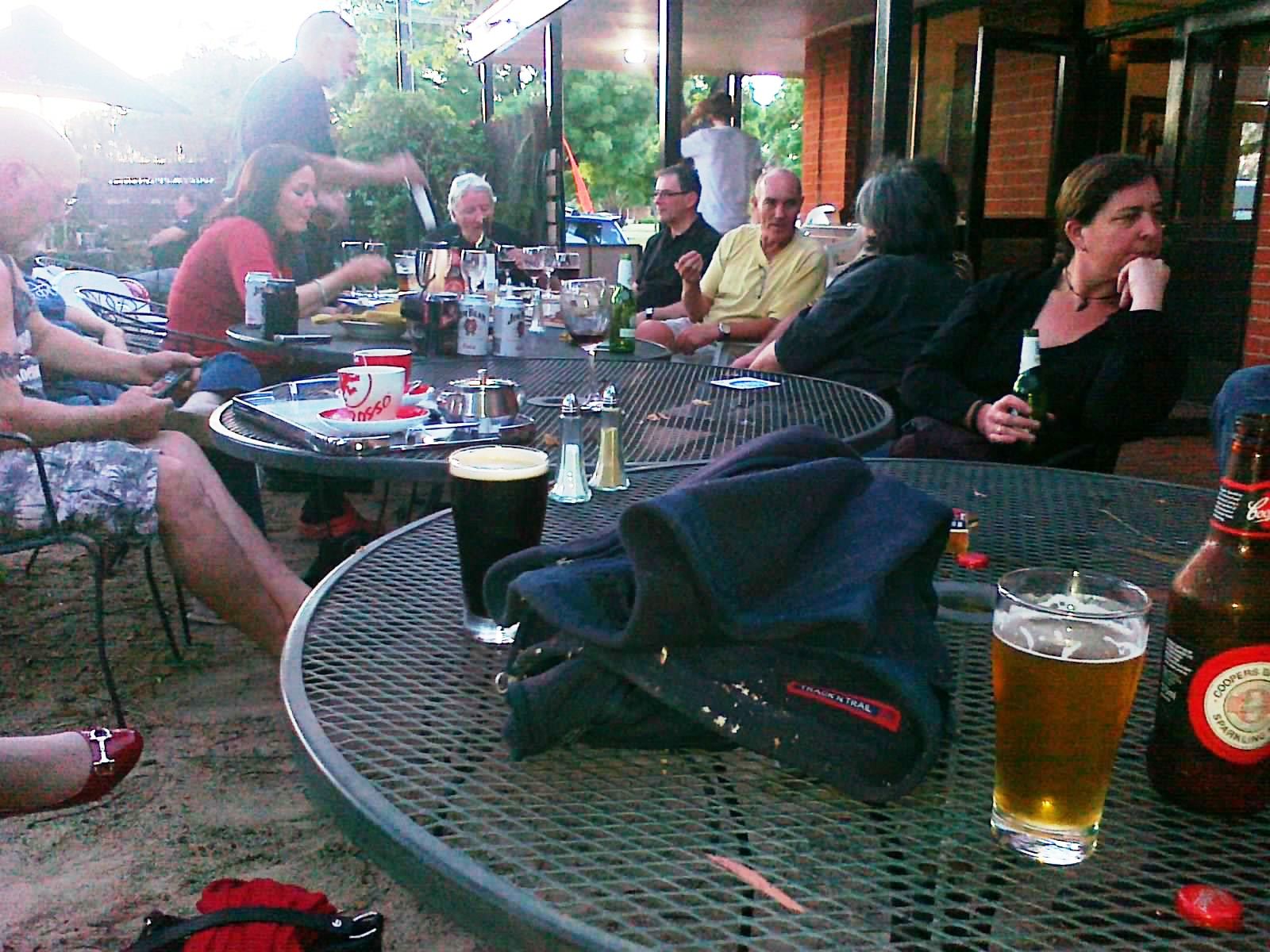 Had about 30 bikes roll up for Friday night. The Moyhu Hotel put on a bus, so we had tea and drinks at the pub beer garden on a very mild night.