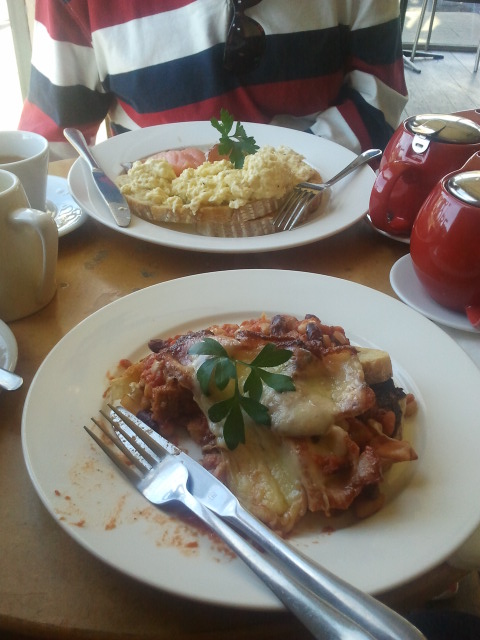 Home-made baked beans for brekky at the Lott Cafe, Cooma.