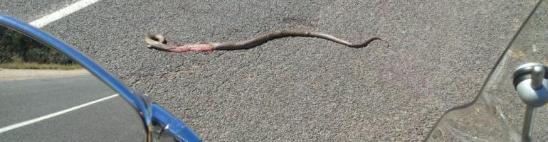 The snake, an eastern brown I reckon, doesn’t appear as big as it was. I eyeballed the length several times and it was definitely over 5 foot long.