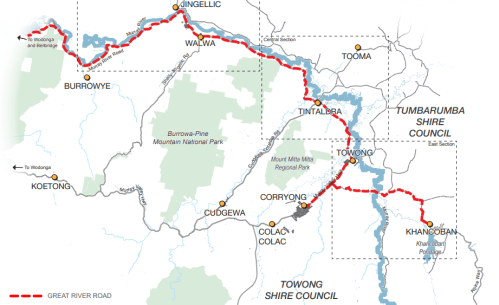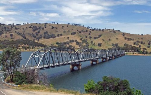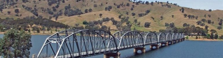 An hour’s run on the Breva 1100 took me up to the Bethanga Bridge, which crosses Lake Hume near the dam wall. This leads onto the Murray River Road which, I see, is now called the Great River Road (presumably a tourist marketing promotion to leverage off the Great Alpine Road and the Great Ocean Road) and follows the Murray River into the Snowy Mountains.